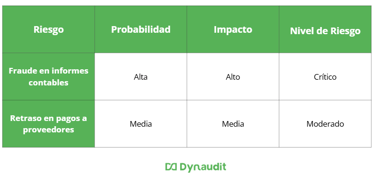 Automatizar esta evaluación de riesgos y visualizar la disponibilidad de tu equipo y el presupuesto, asignando tareas estratégicamente con Dynaudit. Agenda una demo aquí.